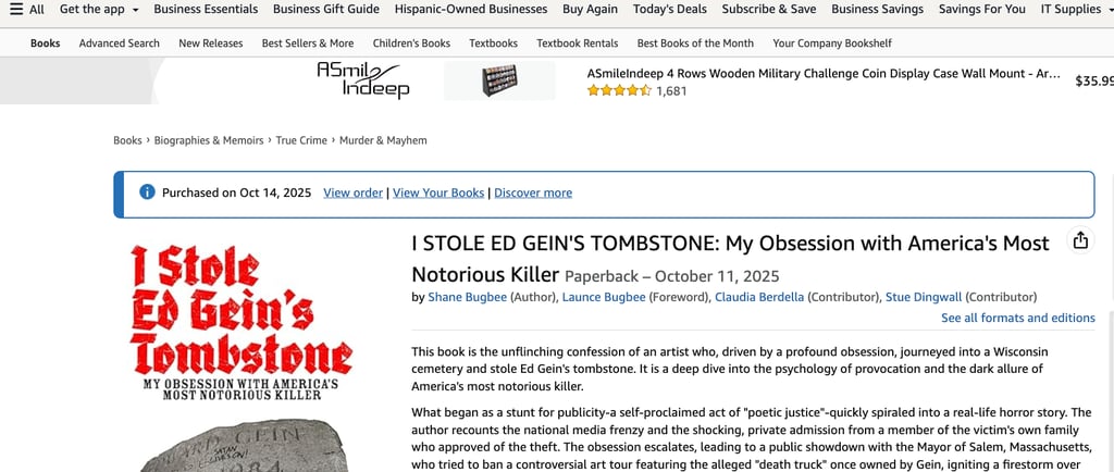 The physical paperback of "I STOLE ED GEIN'S TOMBSTONE: My Obsession with America's Most Notorious Killer" is now LIVE and available for purchase on Amazon.